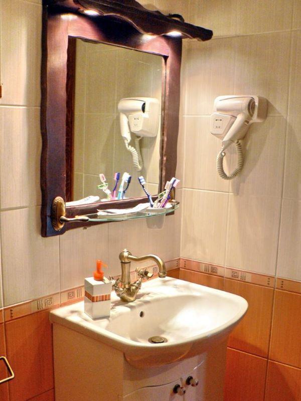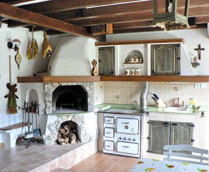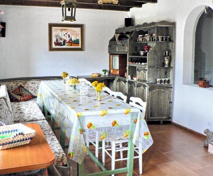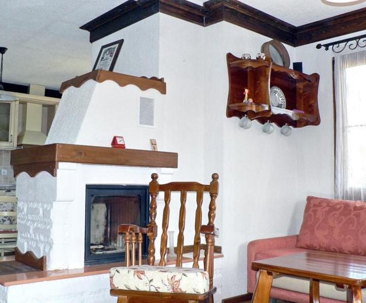 1 етаж - механа с камина с вградена пещ и котелно помещение (килер). Отопление на пелети. Топла вода - електрически бойлер в комбинация с пелети. Каменна веранда пред механата.
