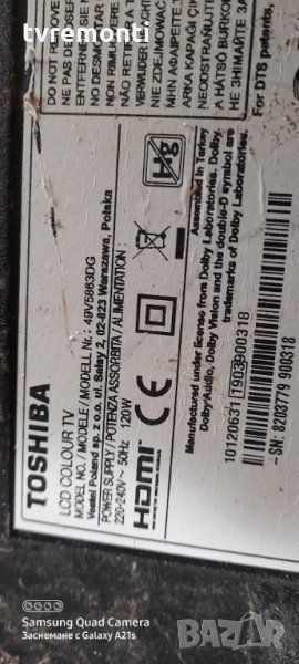 Основна платка 17MB130S Борда е гарантирано работещ Демонтиран от телевизор TOSHIBA модел 49V5863DG със счупен дисплей VES490QNYS-2D-N01 тествана от нашия техник