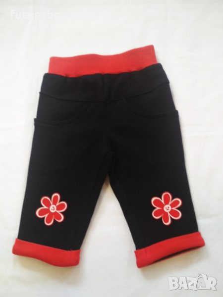 Комплект за бебе момиче в червено и тъмносиньо с шита щампа на зайчета .