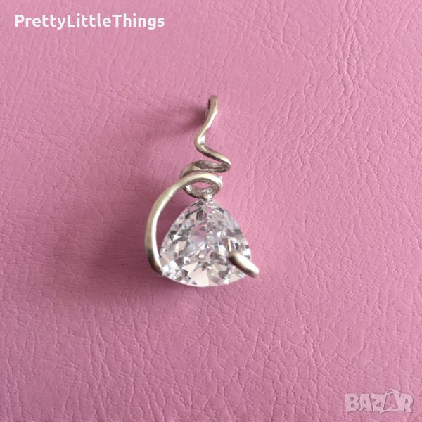 2. Сребърна висулка с бял/прозрачен триъгълен камък 1.4 х 2.8 см - 25 лв.