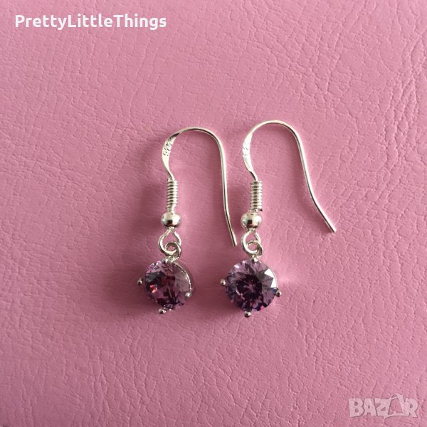 7. Висящи обеци с лилави камъчета - 13 лв.