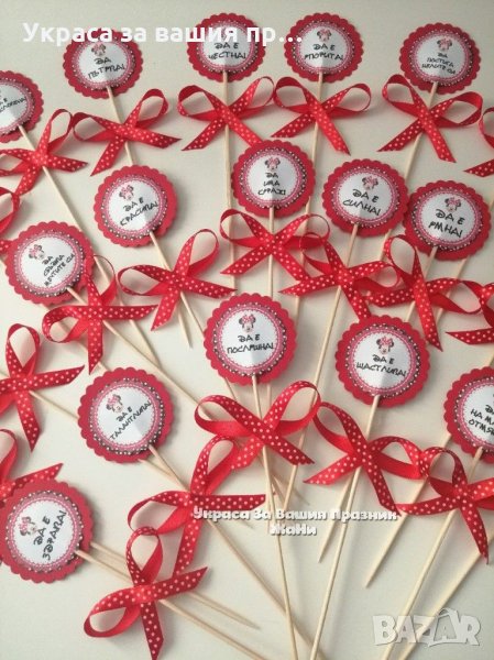 Топери за орисане на бебе с различни пожелания за бебешка погача на тема Мини Маус, снимка 1 - Други - 31879945 Топери за орисане на бебе с различни пожелания за бебешка погача на тема Мини Маус, снимка 2 - Други - 31879945 1/2