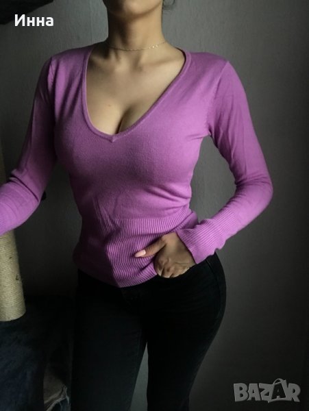 3. Лилава блуза с дълбоко деколте. Размер XS. Цена-9 лева