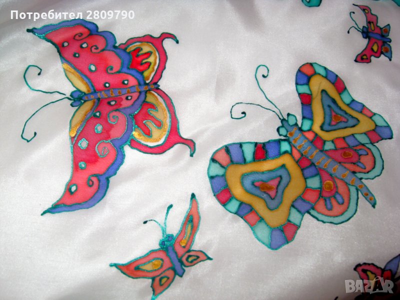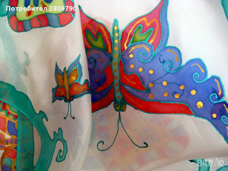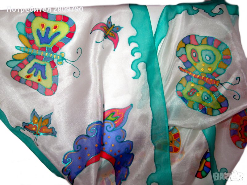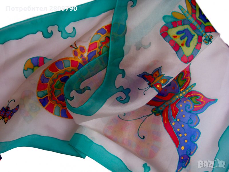 Шалът е единствено по рода си оригинално произведение на изкуството, изработен от нежна, тънка, естествена коприна, наречена Pongee - 5 или excelsior. Уникално произведение на известен автор, направено в единствения екземпляр. Прекрасни нежни пеперуди ще привлекат вниманието към вашето изображение, ще подчертаят изтънчеността и стила. Прекрасен подарък за себе си, приятел, дъщеря, майка за рожден ден, за майчин ден, Коледа, Великден или просто така.