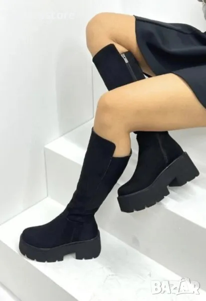 Ботуши на платформа - черен велур - BG20, снимка 1 - Дамски ботуши - 31883824 Ботуши на платформа - черен велур - BG20, снимка 2 - Дамски ботуши - 31883824 1/2