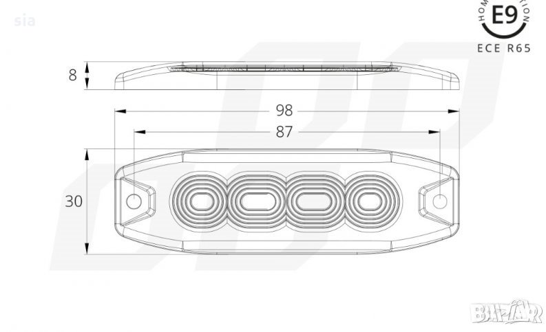 - Одобрение: ECE R65, ECE R10