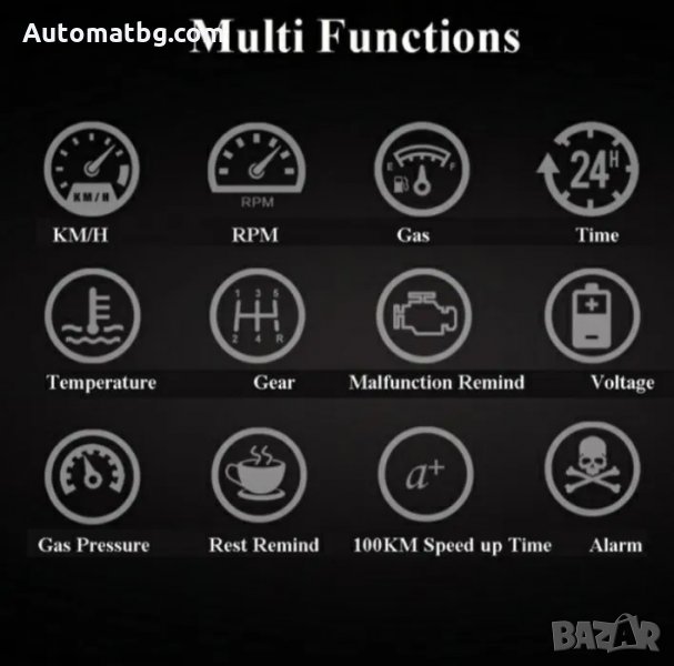 Модул за проектиране на информацията от борд компютъра на колата, на предното стъкло на колата - реални обороти, километри в час, температура на маслото, напрежение на акумулатора, пробег и др.
