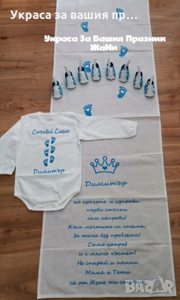 Украса За прощъпулник * пътечка за първите стъпки на детето *боди с текст по поръчка * 3д кецове под → Обява 31889178