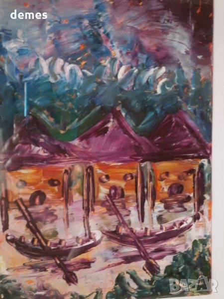 Картината е изработена с маслени бои.