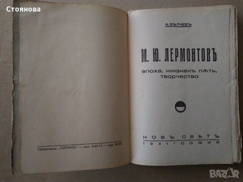 Продавам: 1.Антикварна книга "М.Ю.Лермонтов - епоха, жизнен път, творчество", 1941 г. , А.Белчев, Изд.'Нов свят" - София, меки корици, 138 стр. Цена 22 лева и 2.Книга на руски език "М.Ю.Лермонтов - Стихотворения, Герой нашего времени", 1972 г., Изд."Детская литература" - Москва, твърди корици, 189 стр. Цена - 12 лева. Книгите са в много добро състояние за годините си.