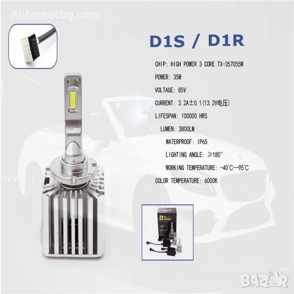 Led D-Series е съвременна, модерна лед крушка за фар заместител на ксеноновите крушки D1R, D1S, D2S, D2R. Лед крушките се поставят директно на фара, без да променяте оргиналната инсталация на автомобила. Работят със заводските баласти и е небходимо просто да включите буксата от старата ви крушка.