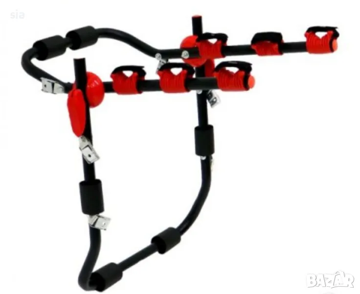 Лесно се монтира на автомобила. Изработена от алуминий, ABS пластмаса и качук.Размери: 70/ 47,5 см.Подходящ за кола тип седан, хечбек, комби ,джип. Без джипове с гуми на багажника.Комплекта съдължа 1бр. стойка, 2*3бр. скоби за закрепяне на велосипед, колани.Тегло 4кг.