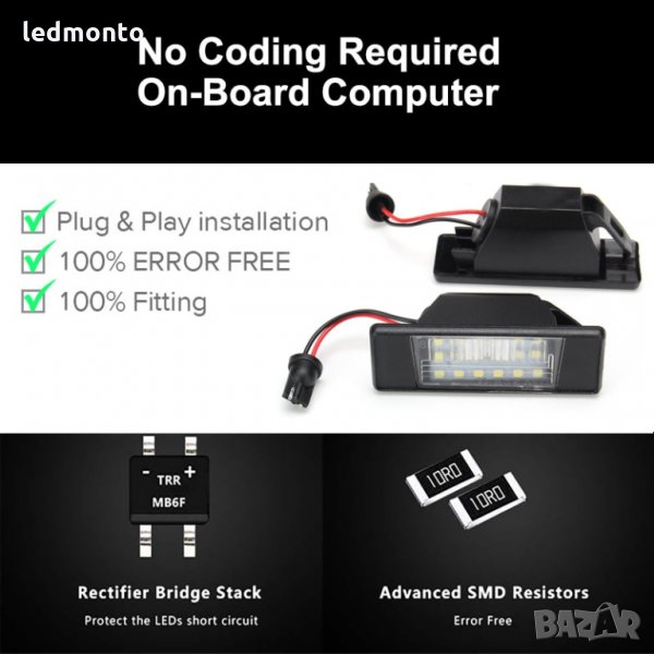 7,2 броя (чифт) 3W мощна SMD LED лампа за регистрационни табели.