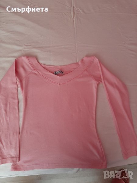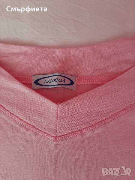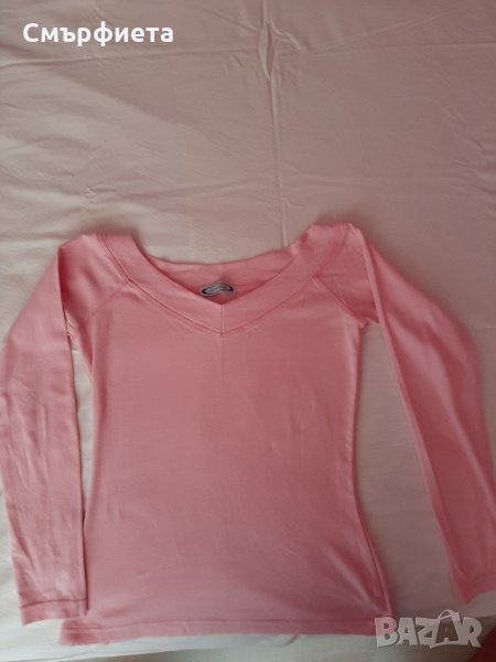 Дамска блузка за пролетта в нежен розов цвят. Красиво деколте и много мекичка материя. Българско производство. Като нова е, слагана 1-2 пъти.