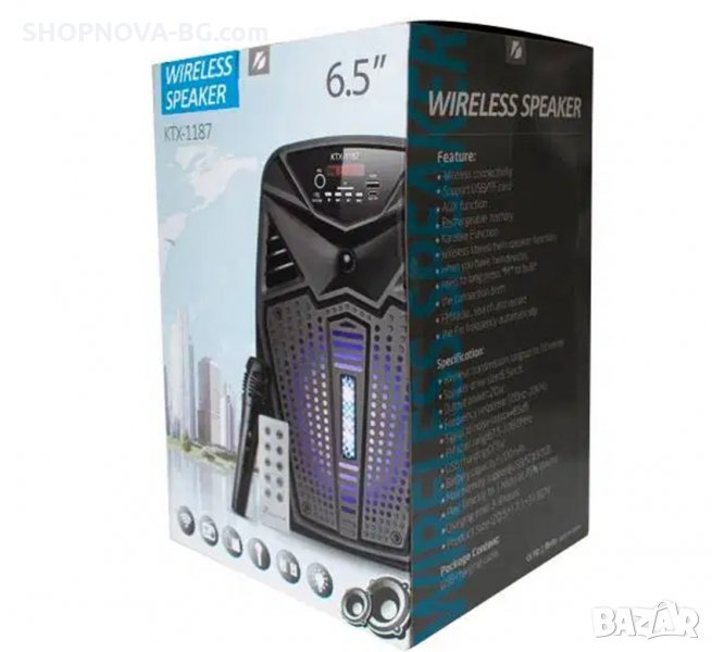 Караоке Тонколона KTX-1187, с Bluetooth, Micro SD, USB, FM радио, LED светлина