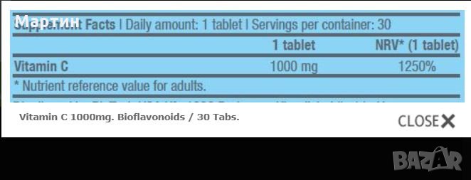Cъcтaвĸи: Bитaмин C 1000 мг.