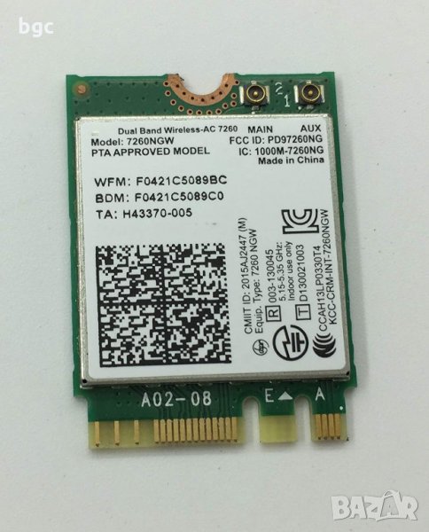 Intel Wireless 7260 M.2 карта с форм-фактор. Тази карта комбинира Intel 7260 WLAN и BT 4.0 + HS (Bluetooth) върху една карта.