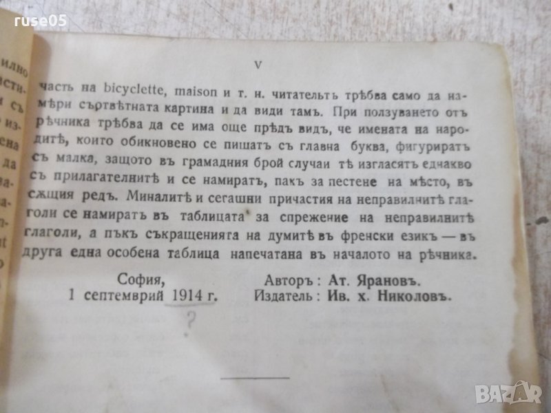 Книга "Френско-български рѣчникъ - Ат. Ярановъ" - 640 стр. → Обява 31902876
