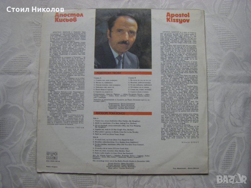 Грамофонна плоча - ВНА 12529 - Родопски песни изпълнява Апостол Кисьов