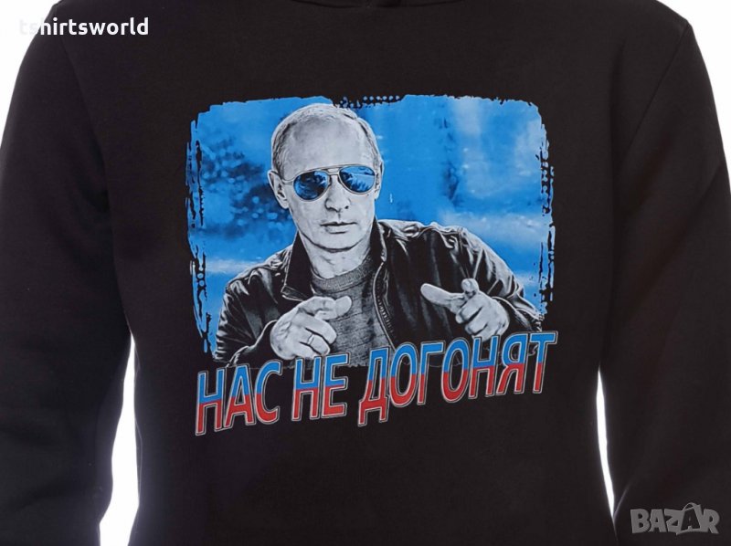 Нов мъжки суичър с трансферен печат на Владимир Путин, Нас не догонят, Русия