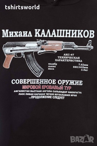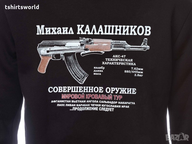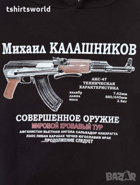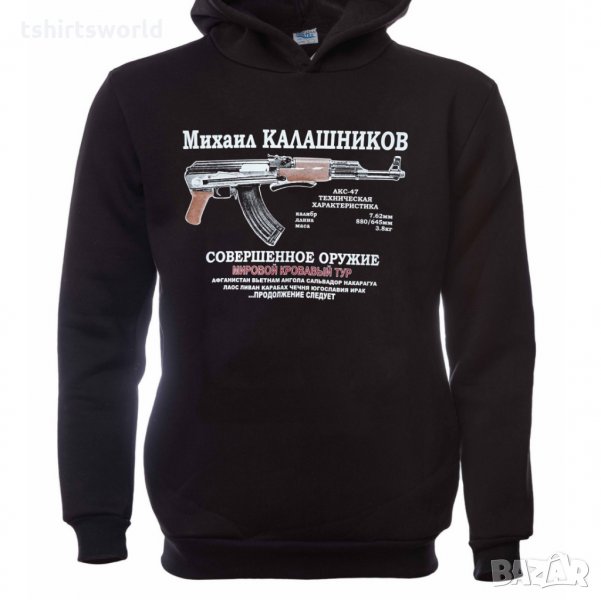 Нов мъжки суичър с трансферен печат на Михаил Калашников, автомат