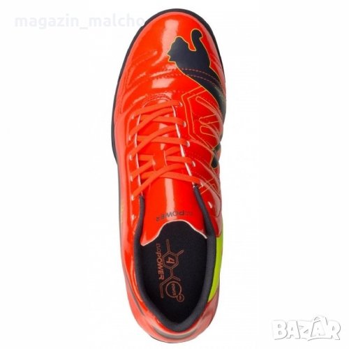 Насладете се на футбола със стоножки Puma. Използвайте модел EvoPower на всякакви терени- от улицата до стадиона. Тези футболни обувки предлагат изключително сцепление на изкуствени терени, благодарение на формованите бутони, разположени стратегически, за да предложат бързо движение по терените. Омекотената стелка предлага удобство, а закрепването с връзки стабилност и комфорт.