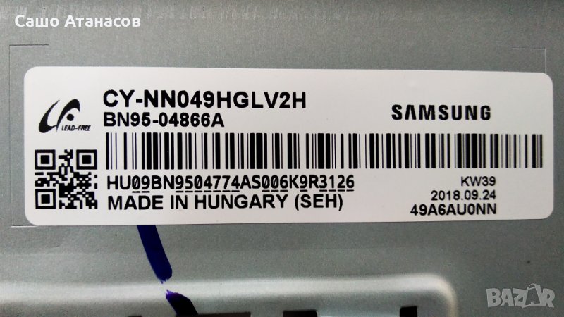 SAMSUNG UE49NU7172U със счупена матрица ,BN44-00932C ,BN41-02635A ,CY-NN049HGLV2H ,Y18 VNB V0.7