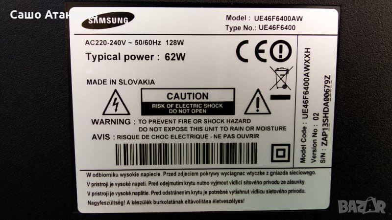 SAMSUNG UE46F6400AW със счупена матрица ,BN44-00623B ,BN41-01958B ,T460HVN05.3 CTRL BD ,WIDT30Q