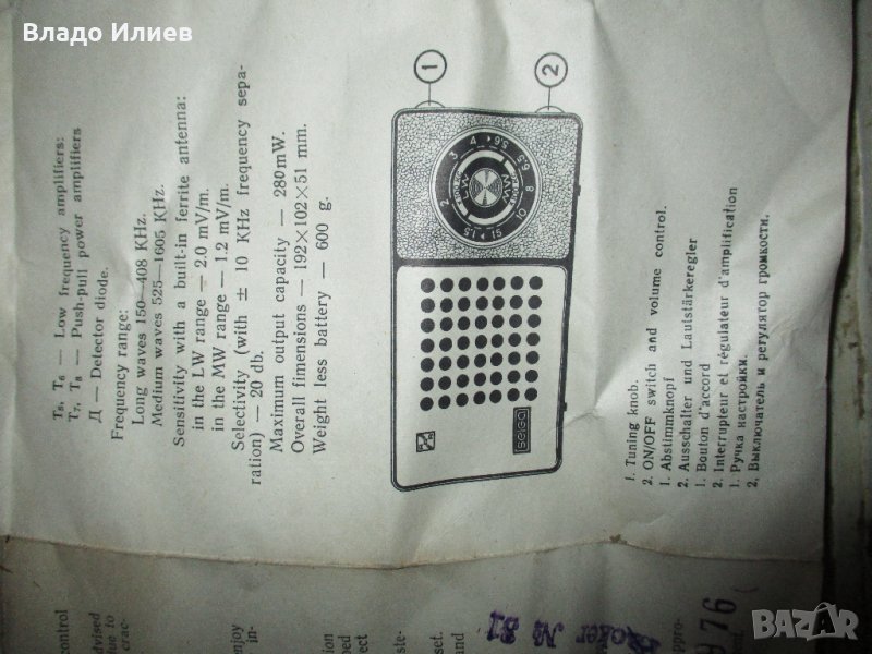Документи на транзистор "Селга" → Обява 31922672