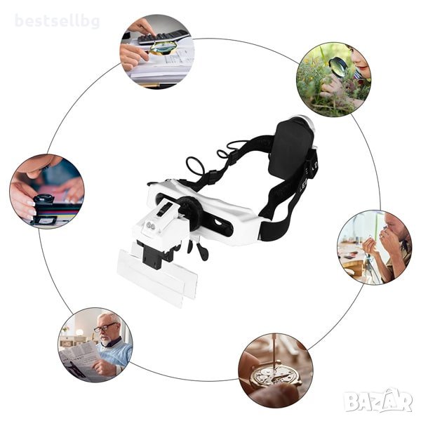 Лупа за глава с много различни увеличения четене, рисуване, занаяти, текстил, бижута оценка, ремонт на часовници, печати, антики и други