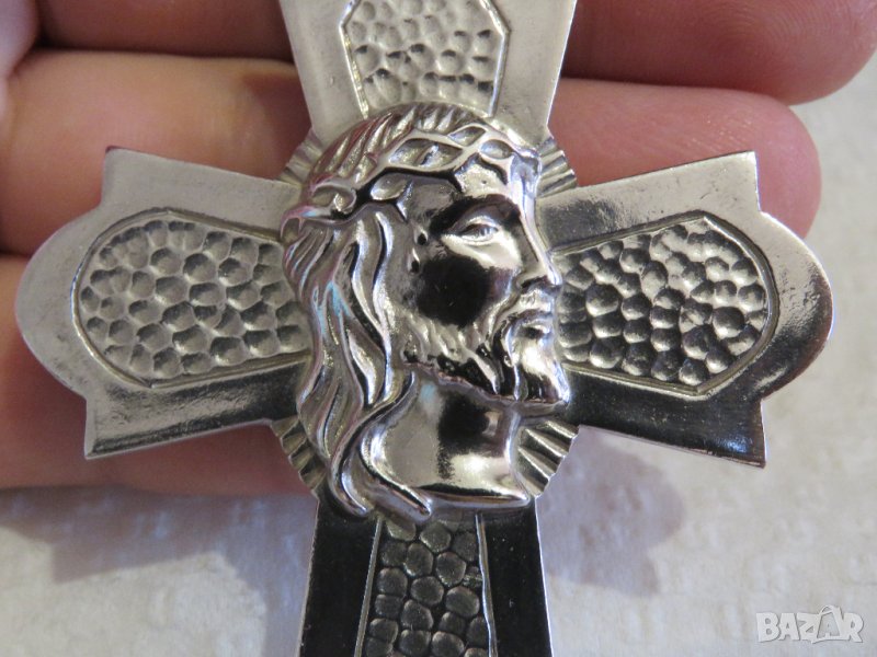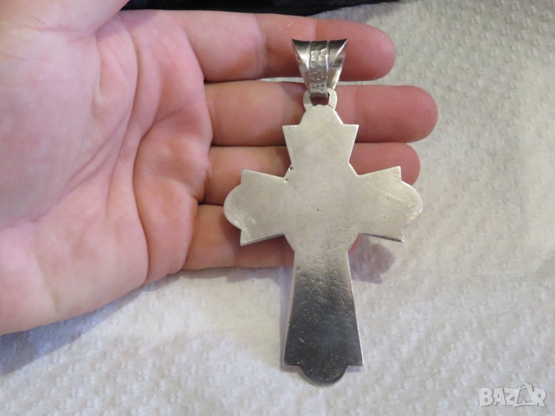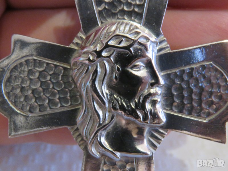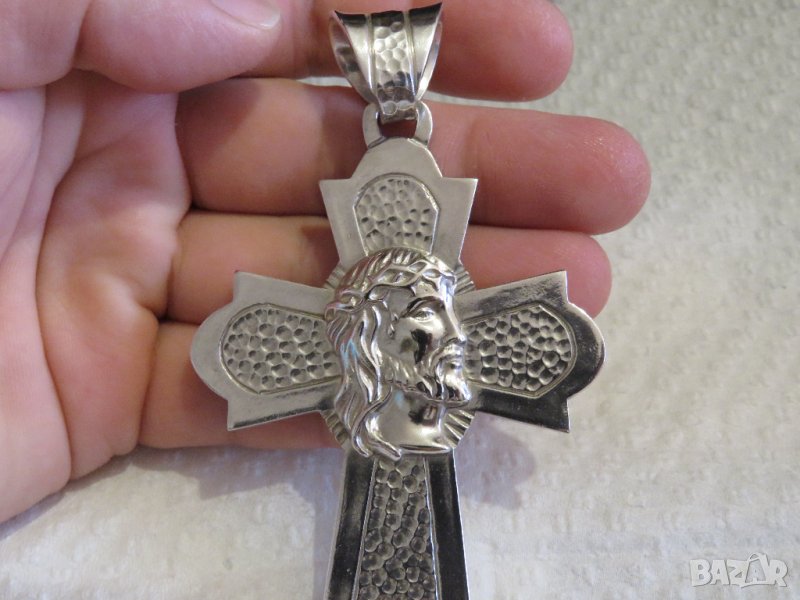 Голям кован старинен мъжки сребърен кръст с Исус Христос сребро религия