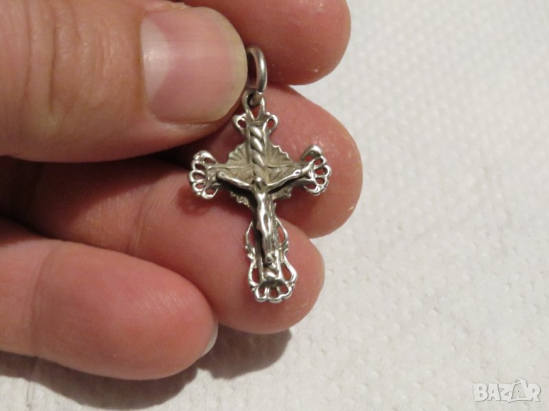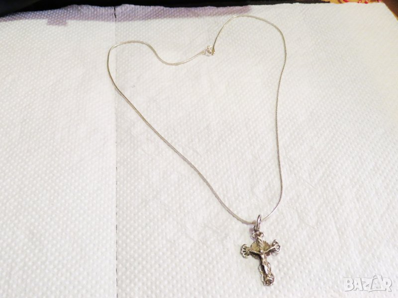 Старинен сребърен кръст разпятие Исус Христос и дървото на живота и сребърно синджирче сребро
