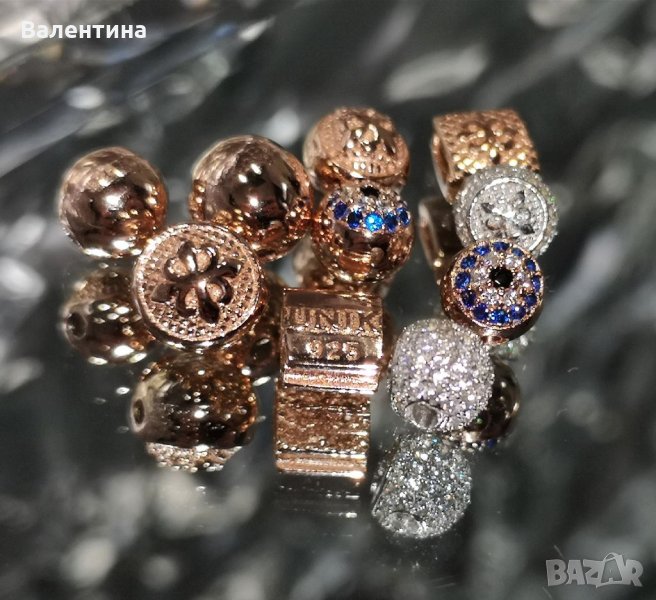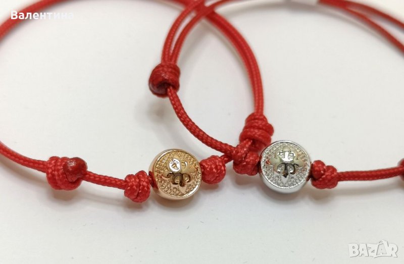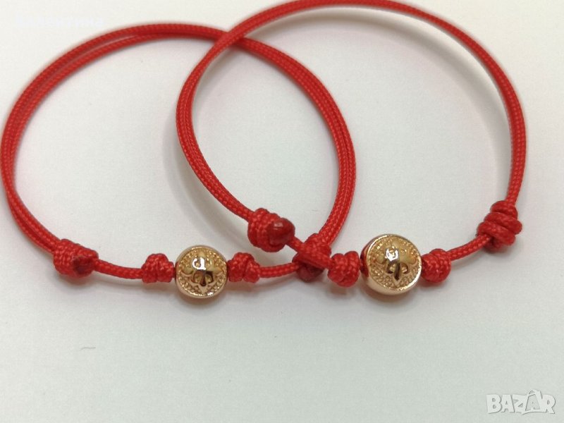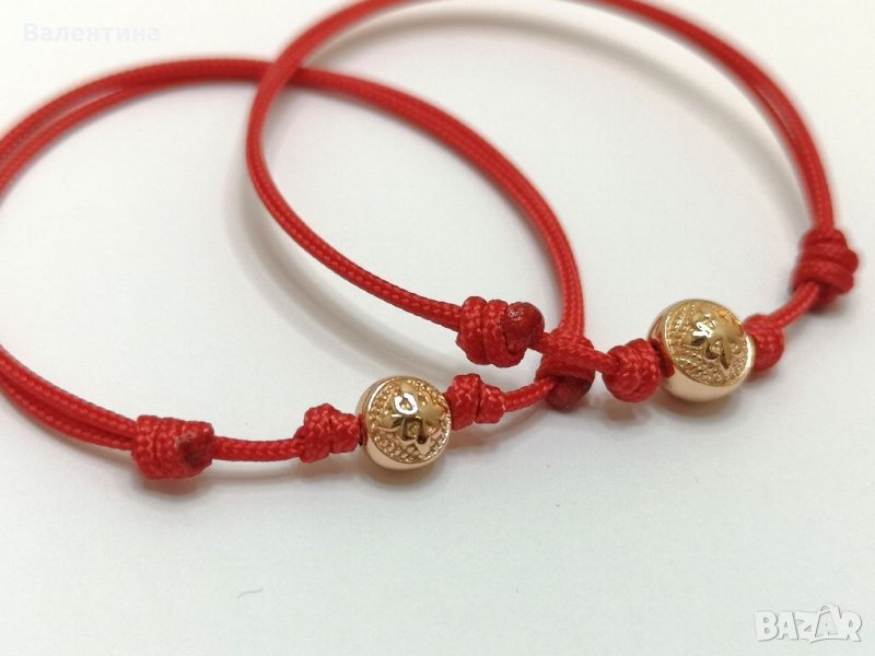 Ръчно изработени гривни червен конец / корда и 925 сребърен елемент със лого и покритие от розово злато –размер на мънистото ~ 6мм ( предлага се и в 8мм, на цена от 💵20,50лв) Подходяща за подарък за мъж , може да се комплектоват "За него и нея"