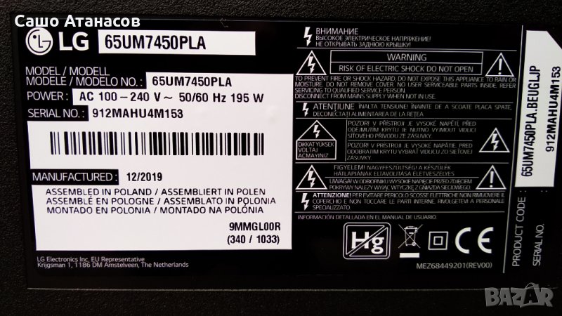 LG 65UM7450PLA със счупена матрица ,LGP65T-19U1 ,EAX68253605(1.1) ,HC650DQG-ABXL1-A141 ,LGSBWAC92