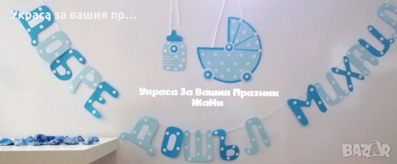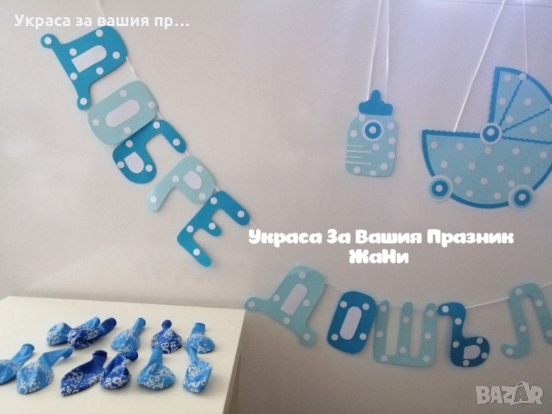 Украса За посрещане на новородено бебе у дома *надпис * табела количка *табела бебешко шише * балони → Обява 31932366