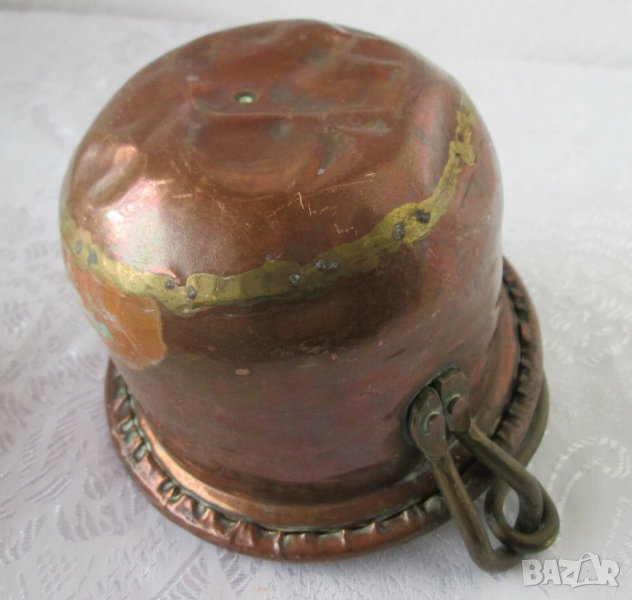 Стар метален съд, менче бакър бакърче, мед месинг метал, кутия, релеф. лов, цинк антика → Обява 31940415