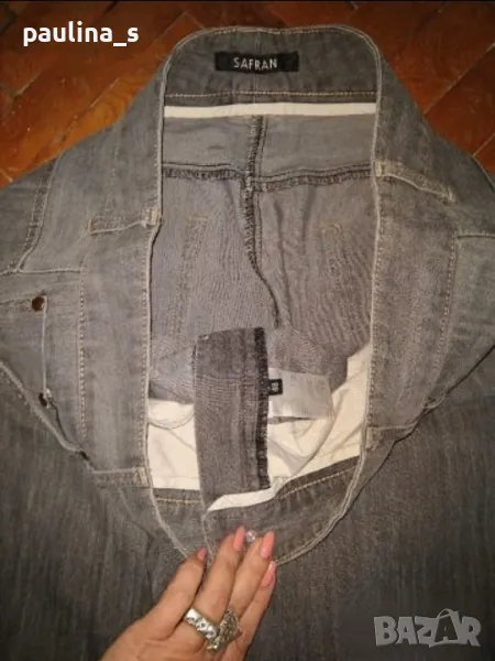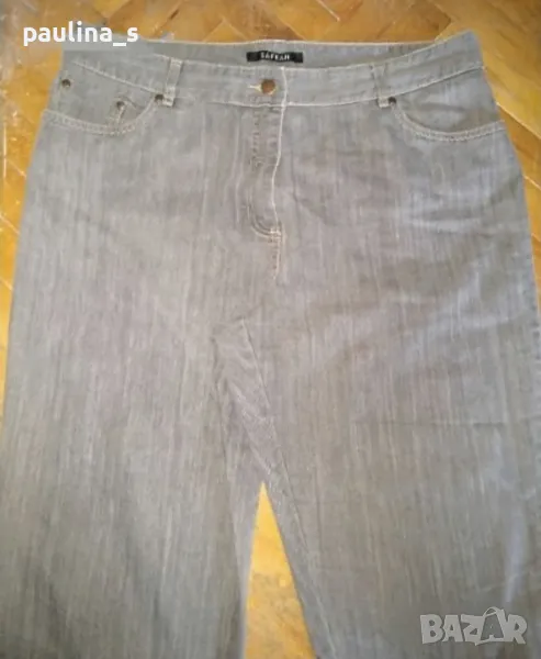 2️⃣. Колаж / 2XL / 3XL (48 EU) - Маркови еластични дънки "Safran". Цената е крайна 29,99лв / 15 евро. Еластични дънки с дължина 7/8. Крачолите са с копчета в страни, брандирани, с оксидирани кабси. Моделът е 5 pocket Denim standard. Без дефекти и етикет, нови.