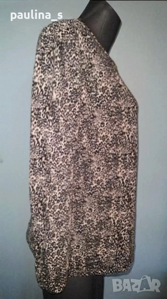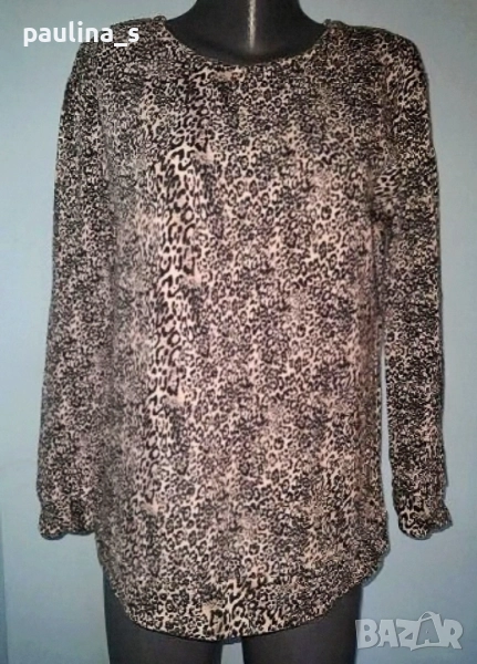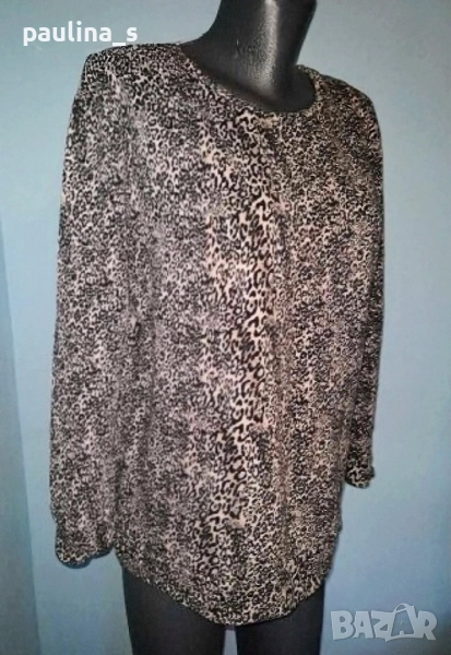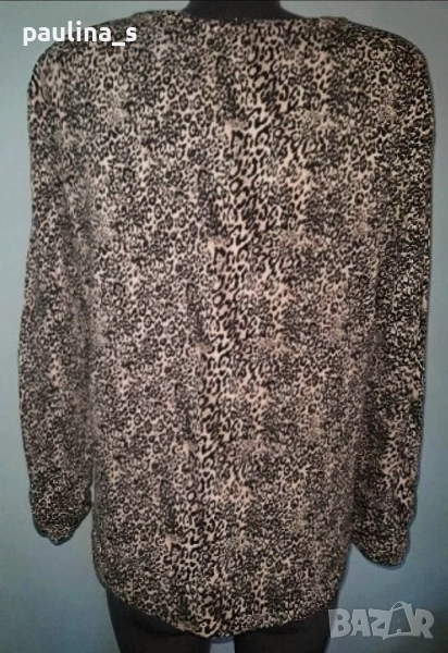 2️⃣. L / 2XL - "Pieces". Цената е крайна 29,99лв / 15 евро. Ватирана блуза с дълъг ръкав в черно розов леопардов принт. Материята е памук - хипоалергична, мека и плътна, много приятна за носене на голо. Моделът е семпъл, съобразно с размера и принта. Трикото дава възможност да се носи от няколко размера.