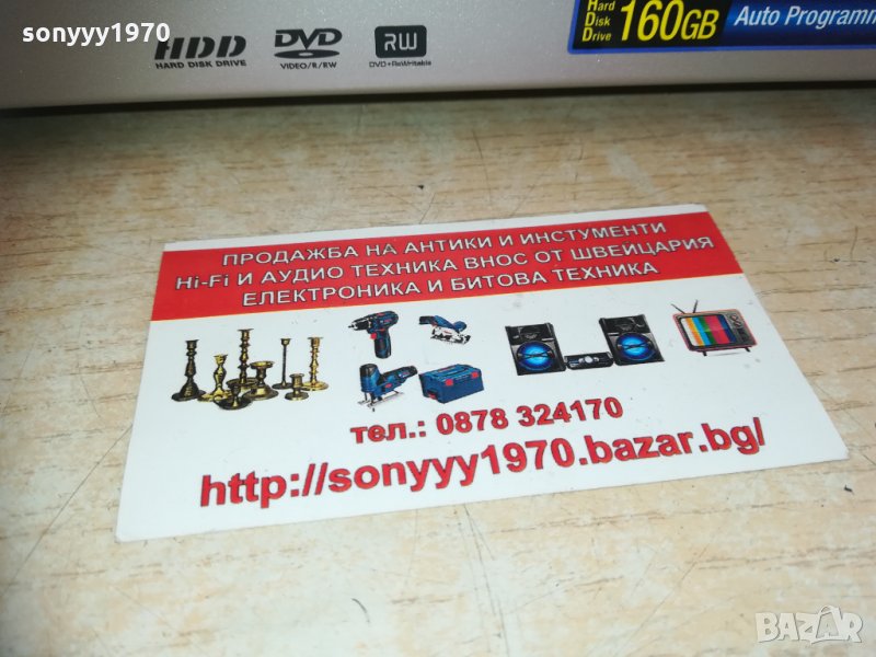 пуска се светка но пише hdd error-диска не отваря-за ремонт за части-Записващо sony-hdd-dvd. Харда е махнат. В много добро състояние.поръчки само тук в саита! от днес 28.02.22г пращаме със спиди или еконт с преглед и тест след превод на капаро за куриерската услуга поради зачестили некоректни потребители-поръчки само в тук в саита! по телефона и със смс не! краини цени! бартери не правиме! всеки ден нови неща-още над 18000 обяви тук