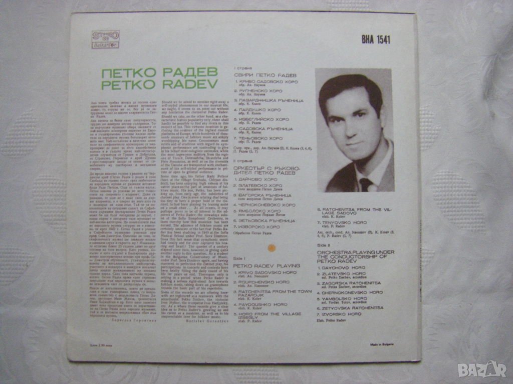 Грамофонна плоча - ВНА 1541 - Свири Петко Радев - Кларинет