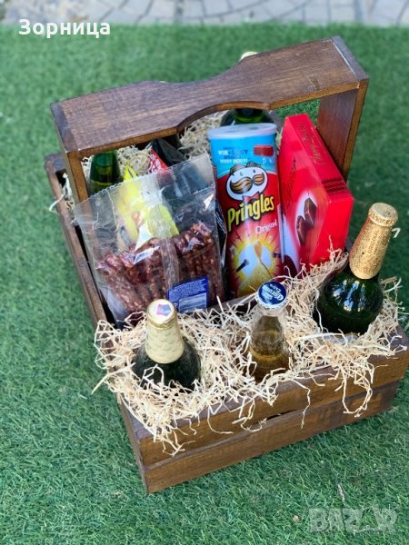 Щайга / кошница за бира изработена от сух иглолистен материал.Размери : дълж. 40 см ; шир 30 см : вис 16 см .Натурална ( небоядисана ) 24,50лв /боядисана 32.00лв, боядисана щайга плюс отварячка за бира - 38.00 лв