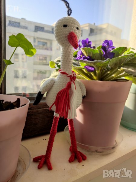 Плетена играчка/мартеничка Щъркел, впоследствие може да се напише име или буква на Щъркела. - 35лв