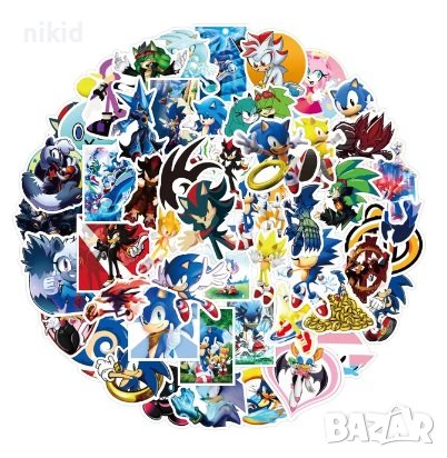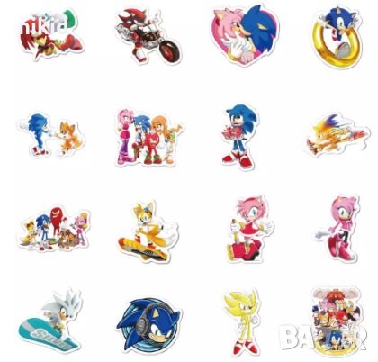 # 2 вид: 50 бр Соник Sonic самозалепващи лепенки стикери за украса декор картонена торта и др → Обява 31957931