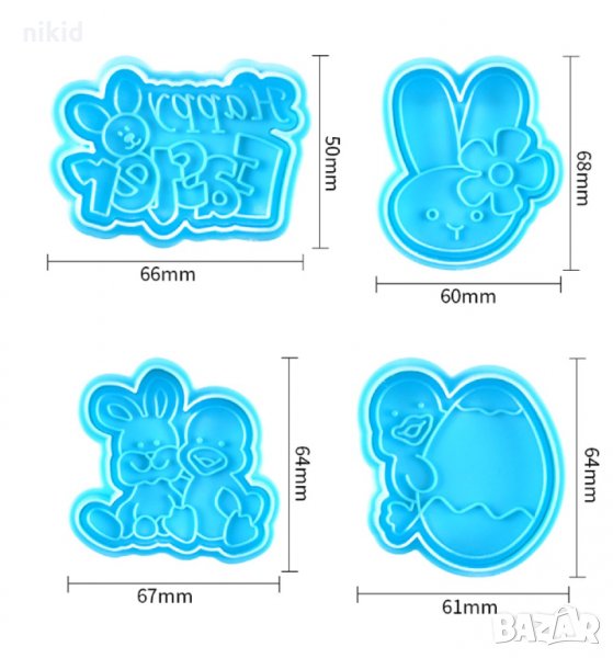 4 бр Пролетни Великден заек яйце пиле пластмасови форми резци с бутало за сладки фондан бисквитки → Обява 31958425