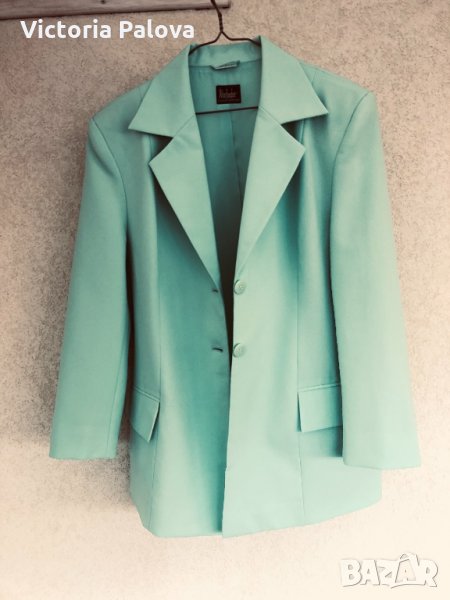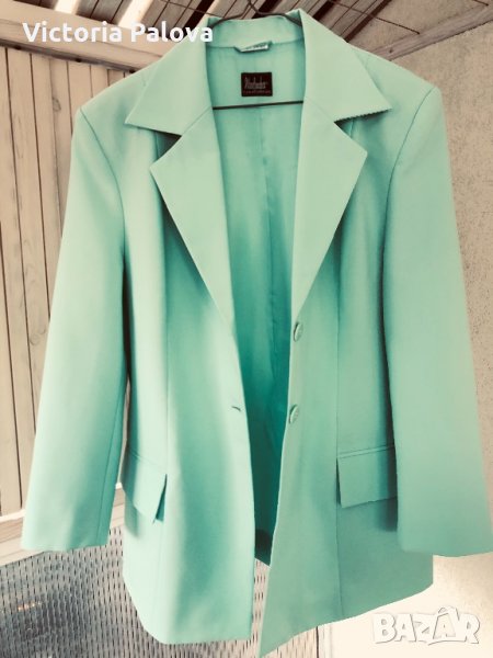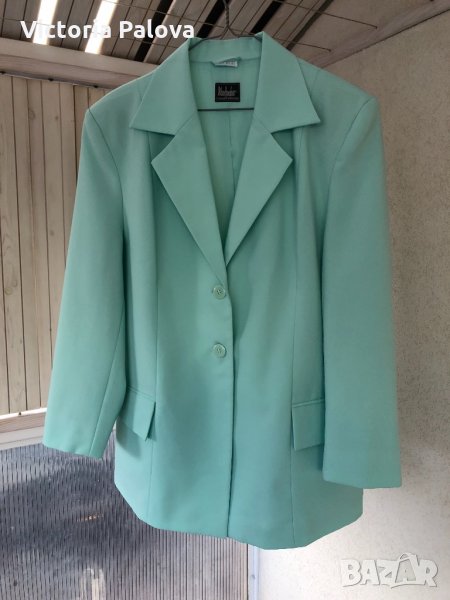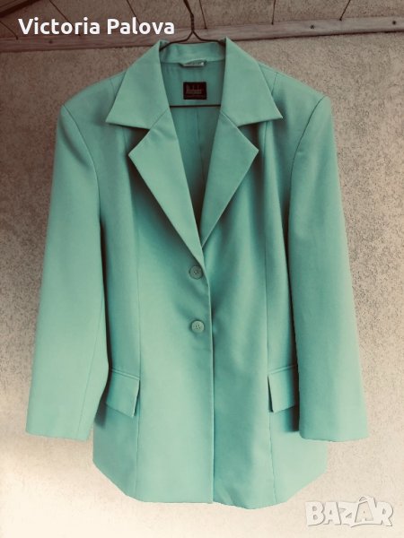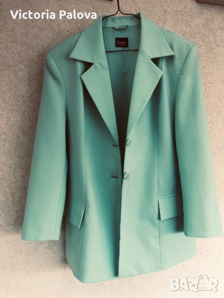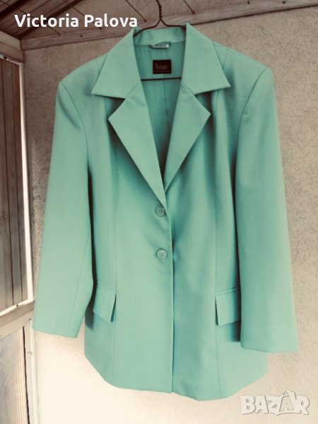 Супер цвят и кройка,лесно се поддържа,би стояло много ефектно на контраста на черна рокля (или панталон).рамене-48см,ГО-56см,талия-52см,ханш-56-57см,дължина-76см,ръкав от рамо-58см,от мишница-37см.
