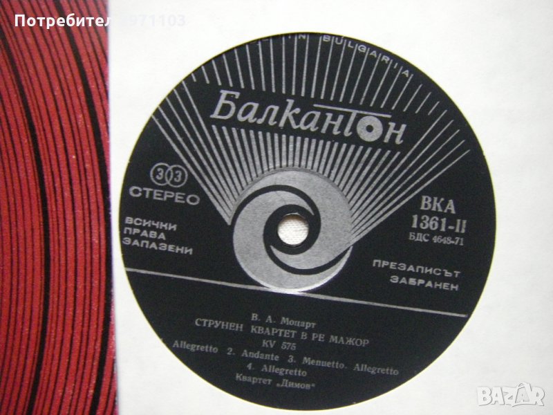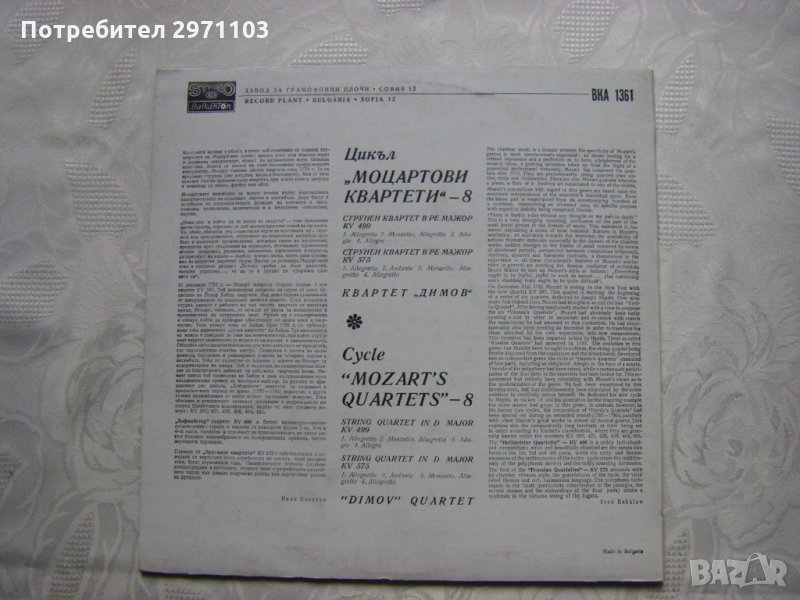 Грамофонна плоча - ВКА 1361 - Квартетите на Моцарт 8 - изп. Квартет Димов