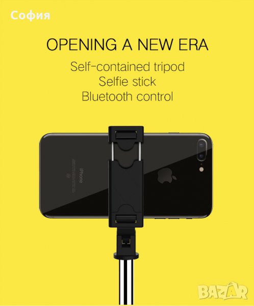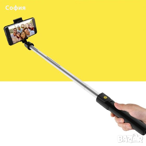 Уникален Bluetooth селфи стик, изработен от висококачествена неръждаема стомана и 360 градуса въртяща глава. Иключително лек и удобен за носене – само 132гр. а дължината му при сгънато положение е само 19,5см. Този селфи стик разполага с вграден статив/трипод и регулируемата дължина на дръжката. Също така и с преносим спусък/дистанционно, което Ви предоставя възможността да правите снимки без да държите стика. Свързването му към телефона е изключително лесно само чрез Bluetooth и без никакви кабели. Съвместим с iOS и Android. Дължината в разгънато положение е 70см. В комплекта получавате и батерия.