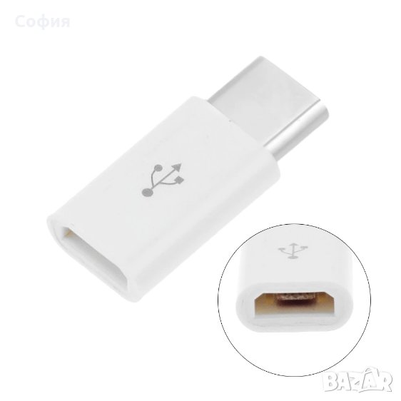 Чисто нов висококачествен мини преходник адаптер от USB Micro към USB Type C. Налични цветове бял и черен.