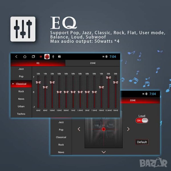 Wi-Fi интернет, новият Андроид, Bluetooth за разговори и музика, USB входове за флашка и зареждане на устройства, GPS навигация, теми за вид на меню, еквалайзер за настройка на звука, бърза реална RAM памет от ново поколение. ТОП дизайн!