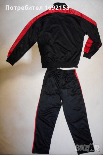 Спортен комплект за момче на възраст между 11 и 13 години и с ръст от 146 до 158см. Материята е 100% полиестер. Двете са купувани отделно, но са носени като комплект, защото цветът и материите им са еднакви. Комплектът е здрав, практичен и удобен.
